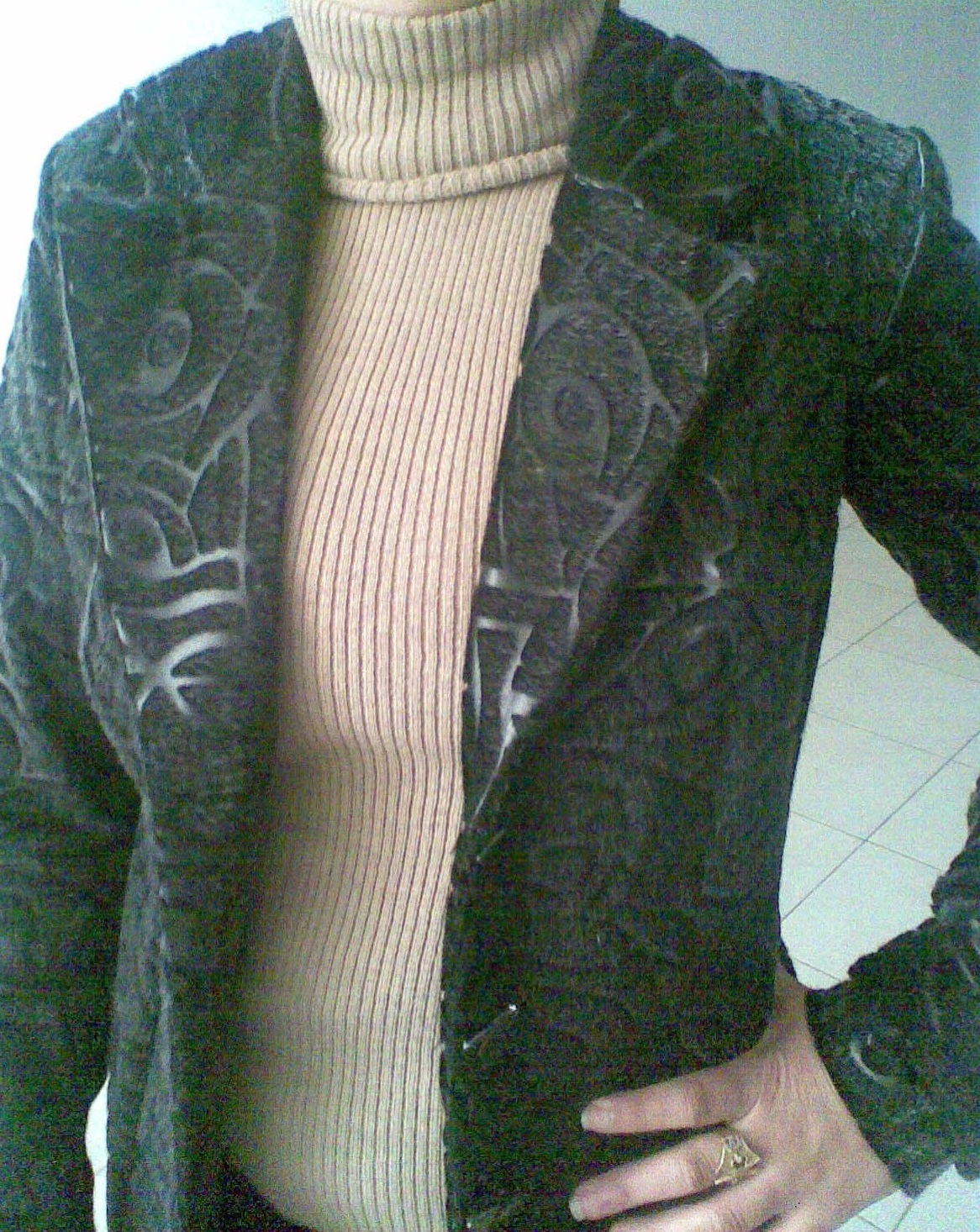 This is my coat. It is leather with fur, and it is my first time sewing a real leather fabric.